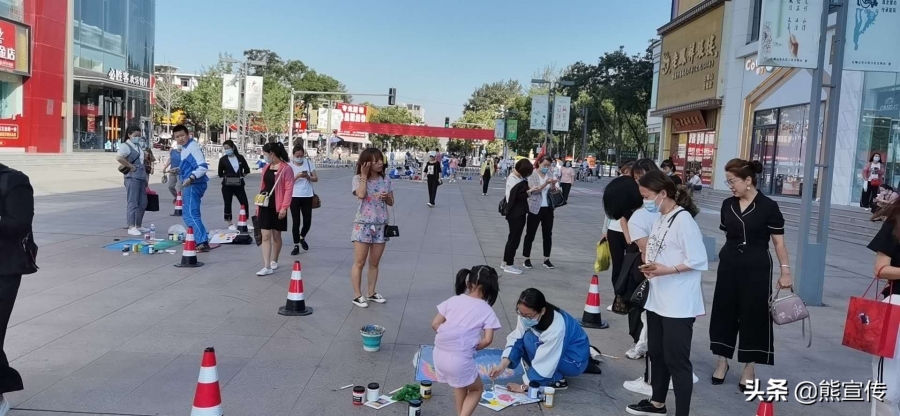 石嘴山市是全国文明城市,为了进一步提升城市文化品位,将这座美丽的“塞上煤城”建设成“宜业宜居宜游”的特色城市,让人文、艺术、美丽成为城市靓丽的名片,使大武口城区山水灵动、艺术增色,使城市的每面墙壁个性张杨,每条马路散发艺术气息,石嘴山市大武口区教育体育局、区综合执法局等多家单位联合组织中学生暑期创新素养教育和综合实践活动 ,石嘴山市第九中学以此为契机,以“创建文明城市,放飞艺术梦想”为主题,带领学校美术社团在大武口步行街开展“立德树人、五育并举”的暑期特色艺术实践活动,让孩子们用手中的画笔为文明城市建设增色添彩。